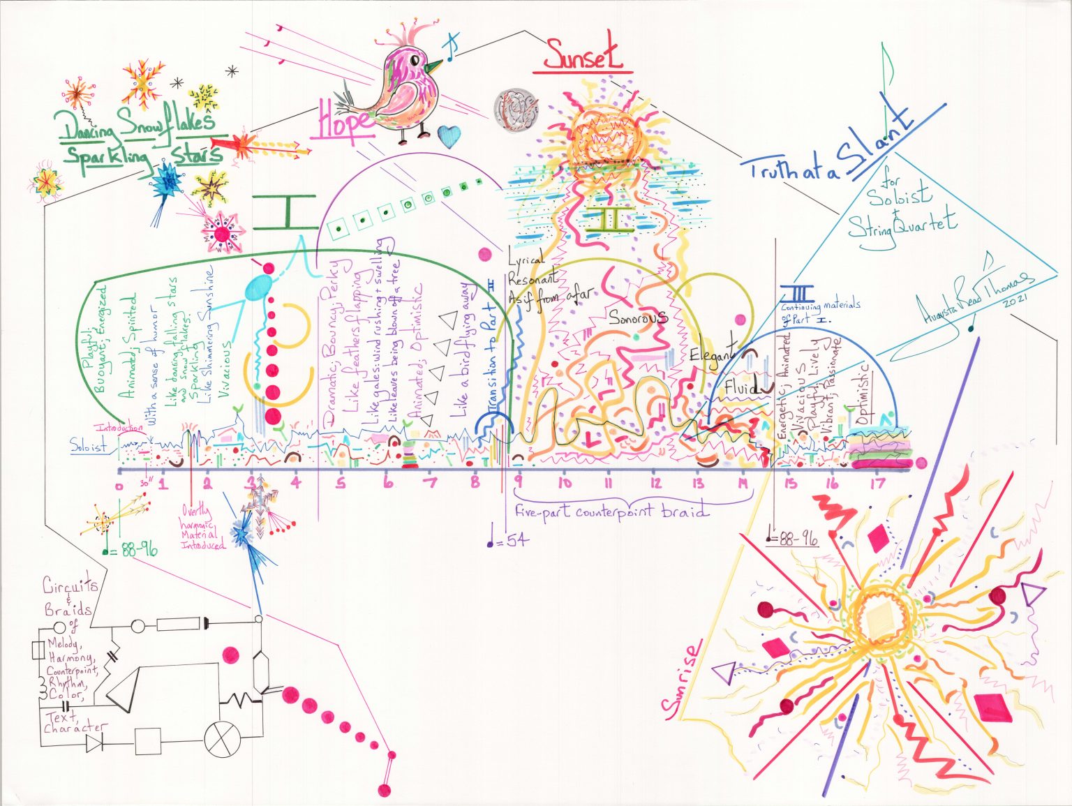 World Premiere of TOWARD A SECRET SKY, setting texts by Rūmī"The Indianapolis Symphonic Choir and the Indianapolis Symphony Orchestra jubilantly premiered Augusta Read Thomas’ Toward a Secret Sky, resonating hopefulness at a time of escalating crisis on personal and community levels worldwide…[the piece] is sonically rapturous, emotionally ecstatic…LOVE in all its manifestations dances its way through some forty minutes, defining the rainbow—a promise from the Divine to mortals, who continue to cling to hope as the raft in times of trial.” (Rita Kohn, NUVO)